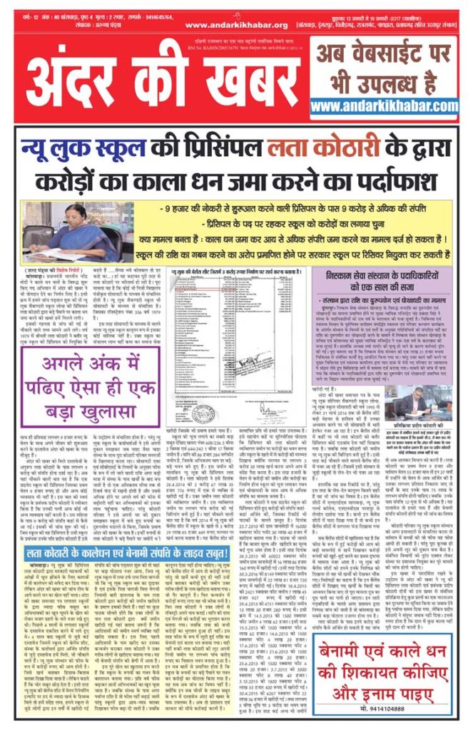 बांसवाड़ा। अंदर की खबर समाचार पत्र द्वारा 13 जनवरी के अंक न्यू लुक स्कूल की प्रिसिंपल लता कोठारी के द्वारा